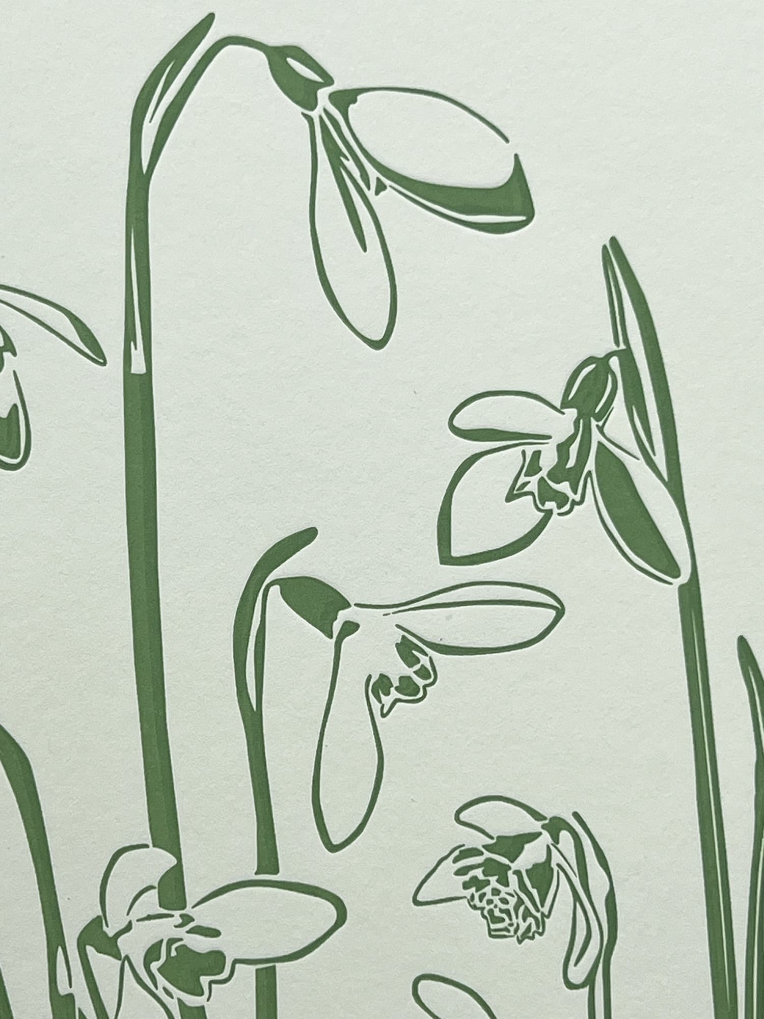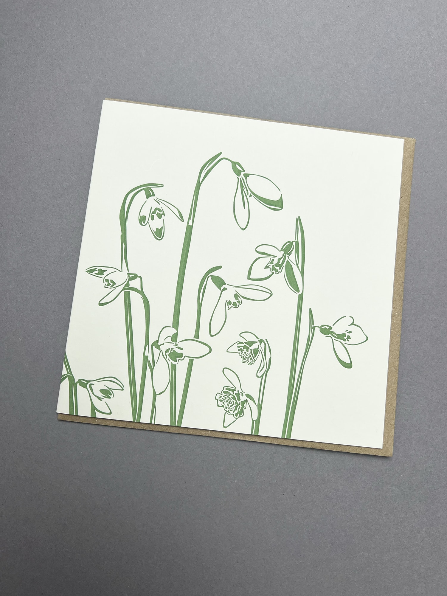 This gorgeous letterpress greeting Snowdrops card is illustrated with lots of different varieties of snowdrop stems. Printed in spring green ink this card is sure to get you thinking of spring. I feel like snowdrops let me know spring is coming!