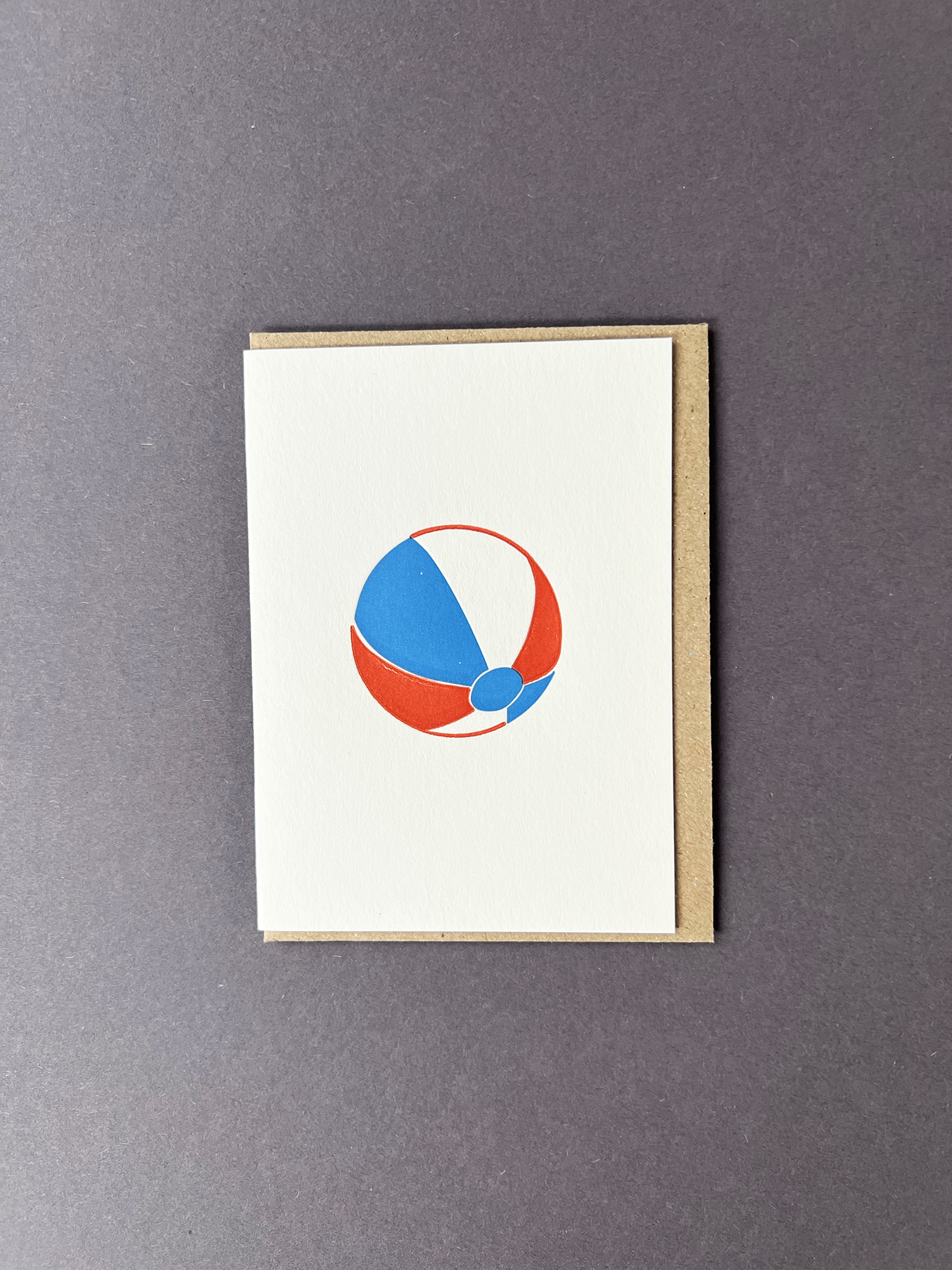 Oh, we do love to be beside the seaside. This gorgeous letterpress greetings card beach ball is illustrated with a classic orange and blue inflatable beach ball. Perfect to send to any seaside fan.